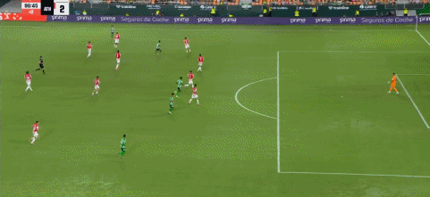 第90+7分钟,巴坎布抢点头球破门扳回一城,贝蒂斯1-2