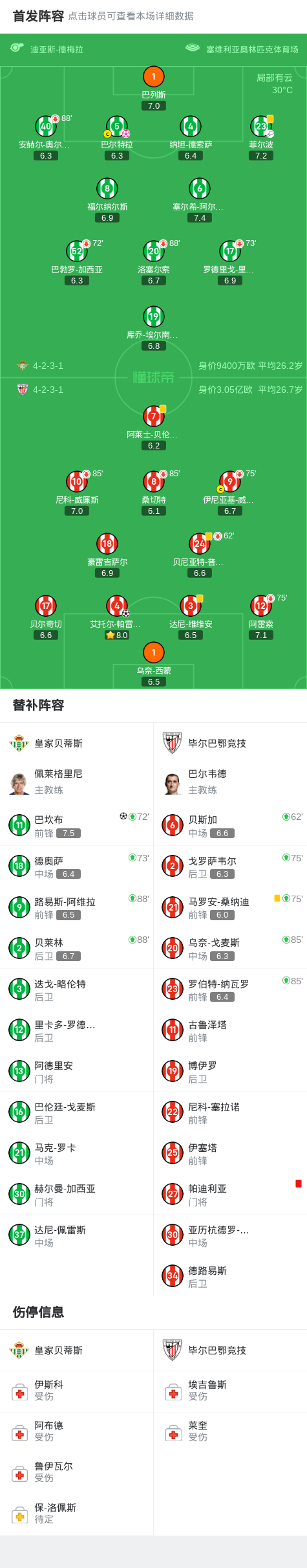 北京时间9月1日西班牙足球甲级联赛 联赛 第3轮,皇家贝蒂斯主场对阵毕尔巴鄂竞技。皇家贝蒂斯巴坎布破门,巴尔特拉自摆乌龙。毕尔巴鄂竞技艾托尔-帕雷德斯破门。最终比分皇家贝蒂斯 1-2 毕尔巴鄂竞技。